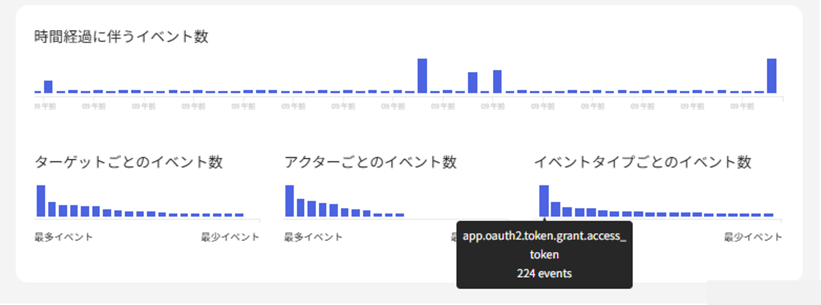「カテゴリー別にイベント傾向を表示」をクリックするとターゲット、アクター、イベントごとに棒グラフで表示されます。