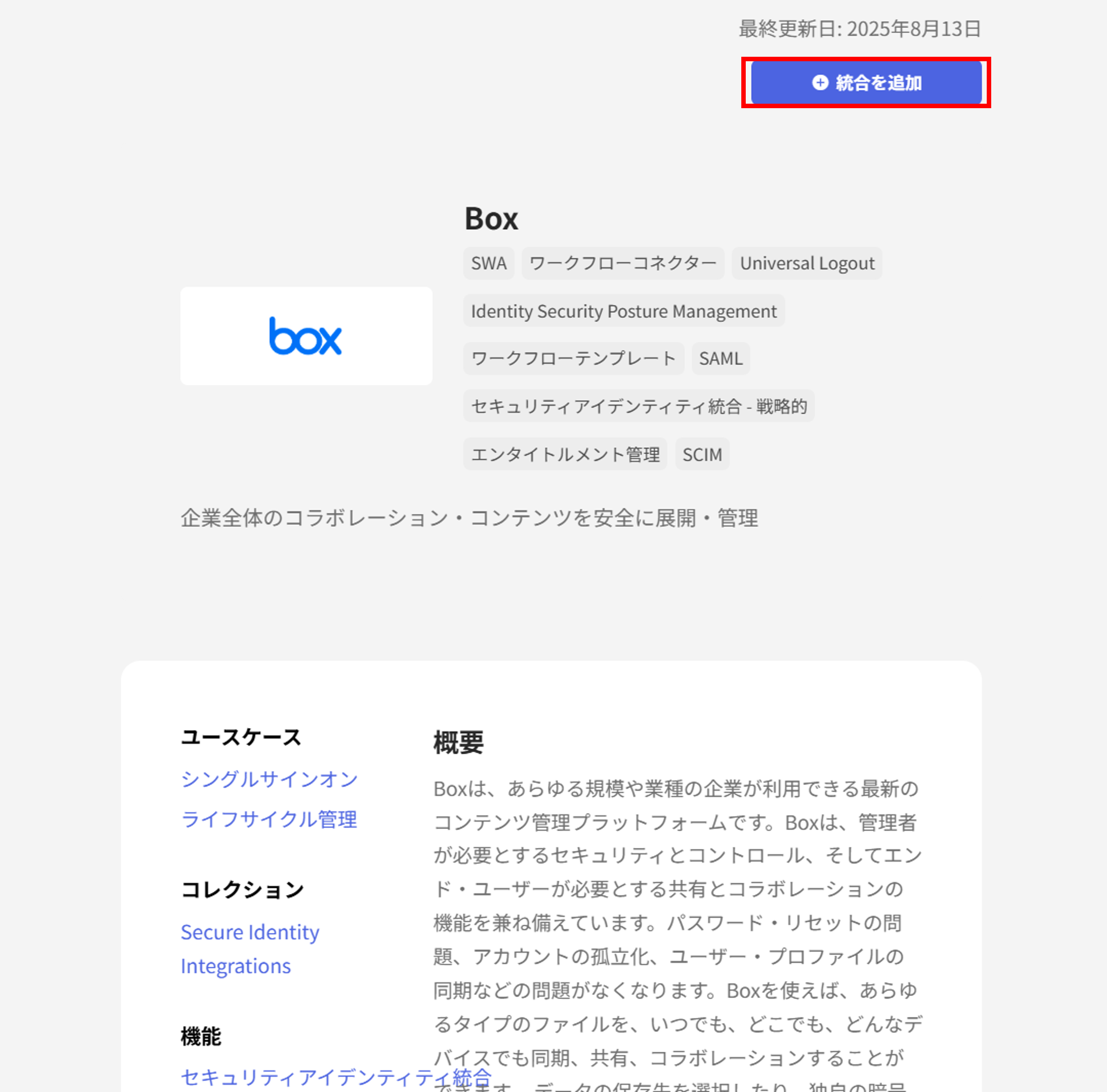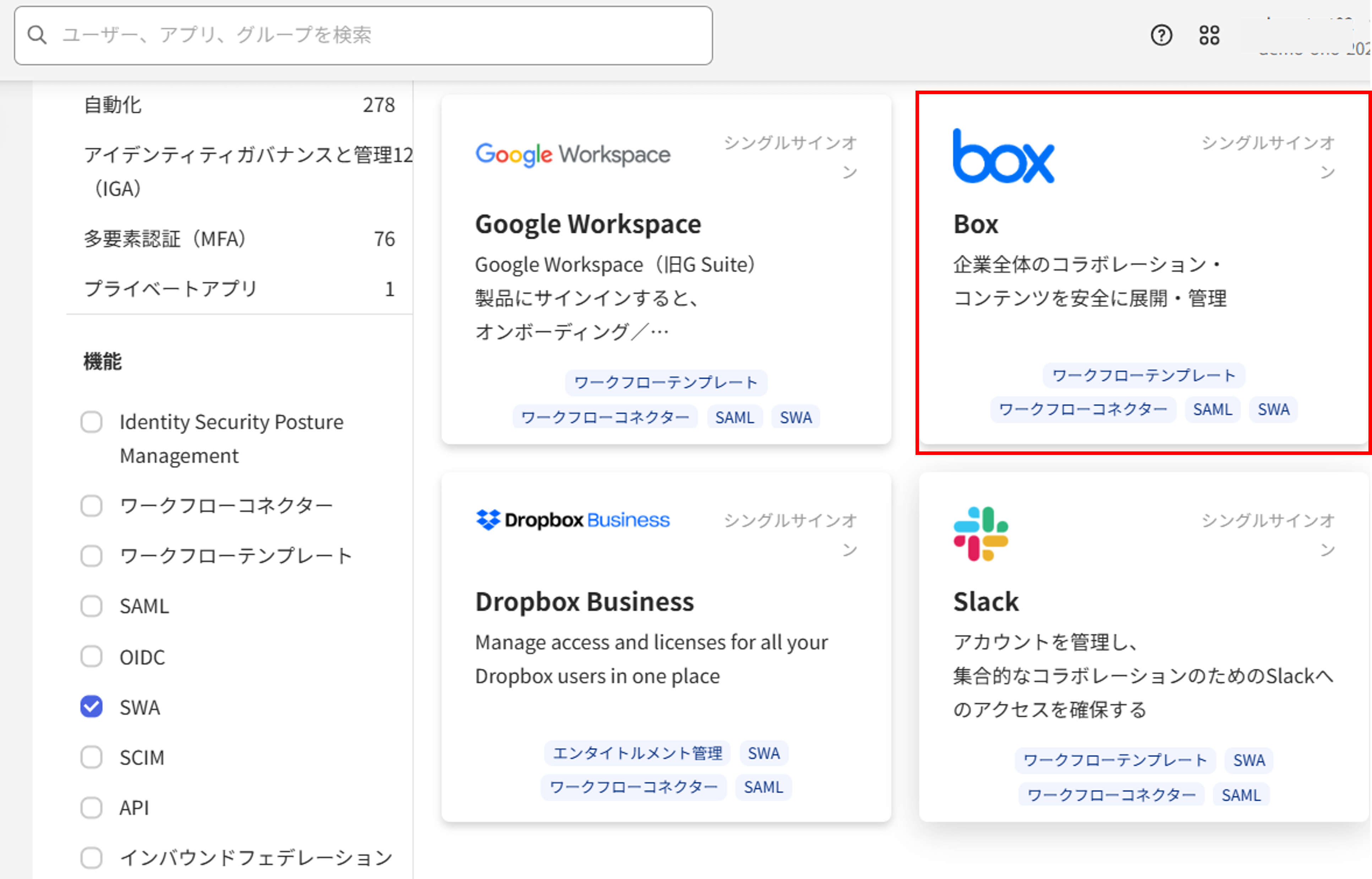 OIN(Okta Integration Network)のアプリカタログを使ってBoxを連携する手順を紹介します。