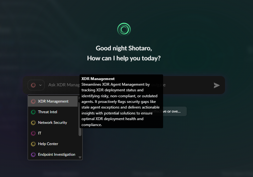 まず初めに実施したい項目に合わせて適切なエージェントを選択します。今回は「XDR Management」を選びます。