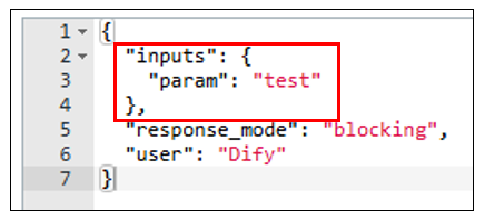 ※この例では、Dify のワークフローに入力引数「param」は存在しませんが、