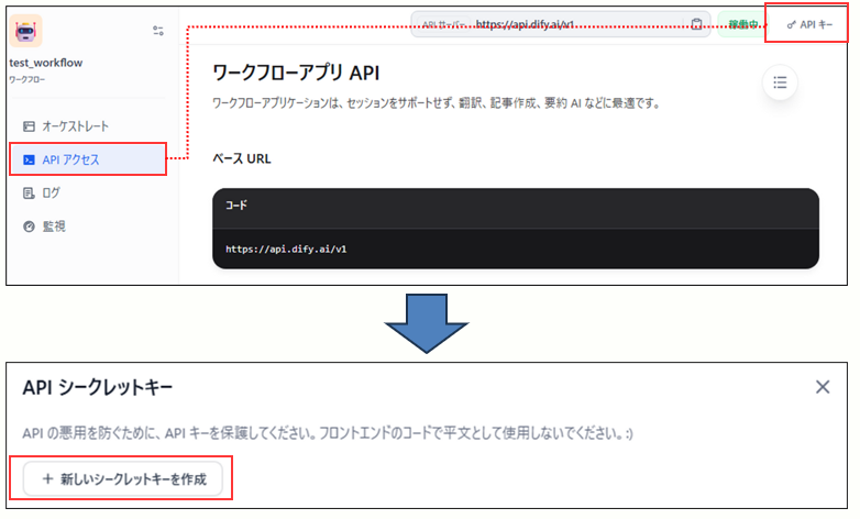 4.Difyのワークフロー公開・API Key取得