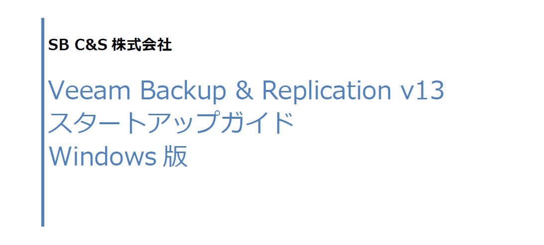 この度、『Veeam Backup & Replication』のバージョン13をWindowsサーバーへ初めて導入する方向けに、『Veeam Backup & Replication』のインストール・初期設定とVMware vSphere上の仮想マシンのバックアップ、リストアを行う際の基本的な操作方法について記載したスタートアップガイドを作成いたしました。