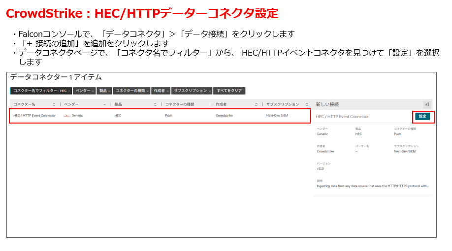 ・CrowdStrike:HEC/HTTPデータコネクタ設定