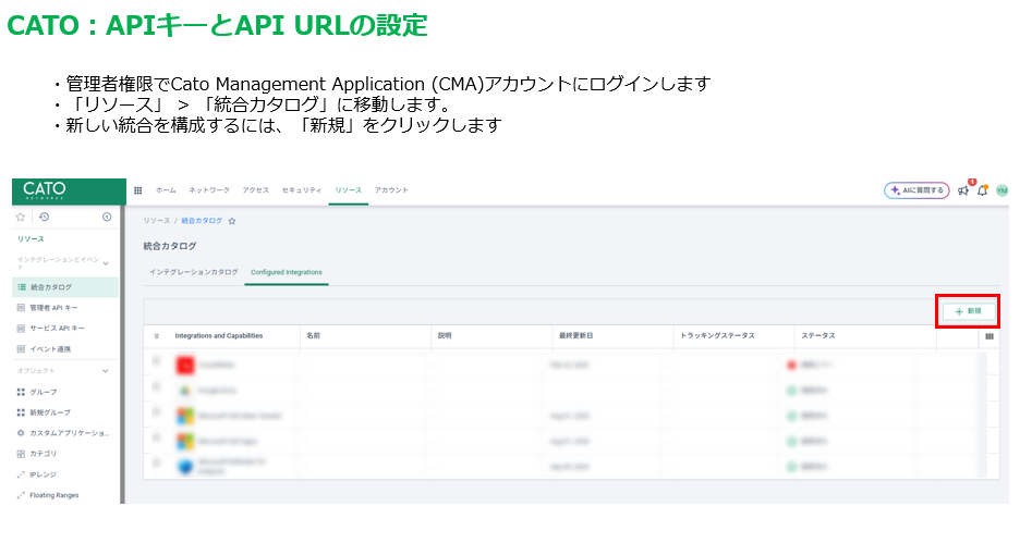 ・CATO:APIキーとAPI URLの設定