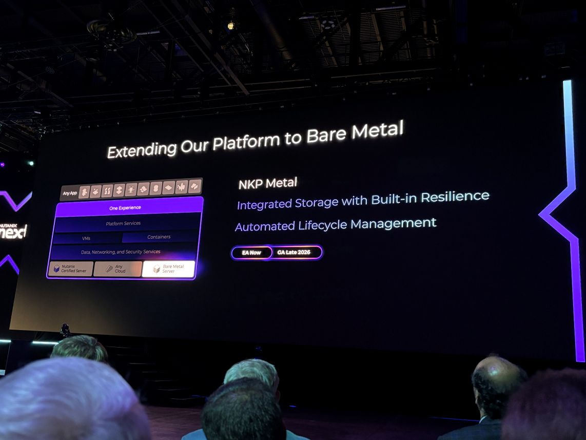 今回の発表の中でも注目点のひとつが、NKP Metalです。ここで示されているのは、単なるベアメタル対応ではなく、ベアメタル、VMベースの環境、ストレージをまたいで、一貫したライフサイクル管理を提供するという考え方です。