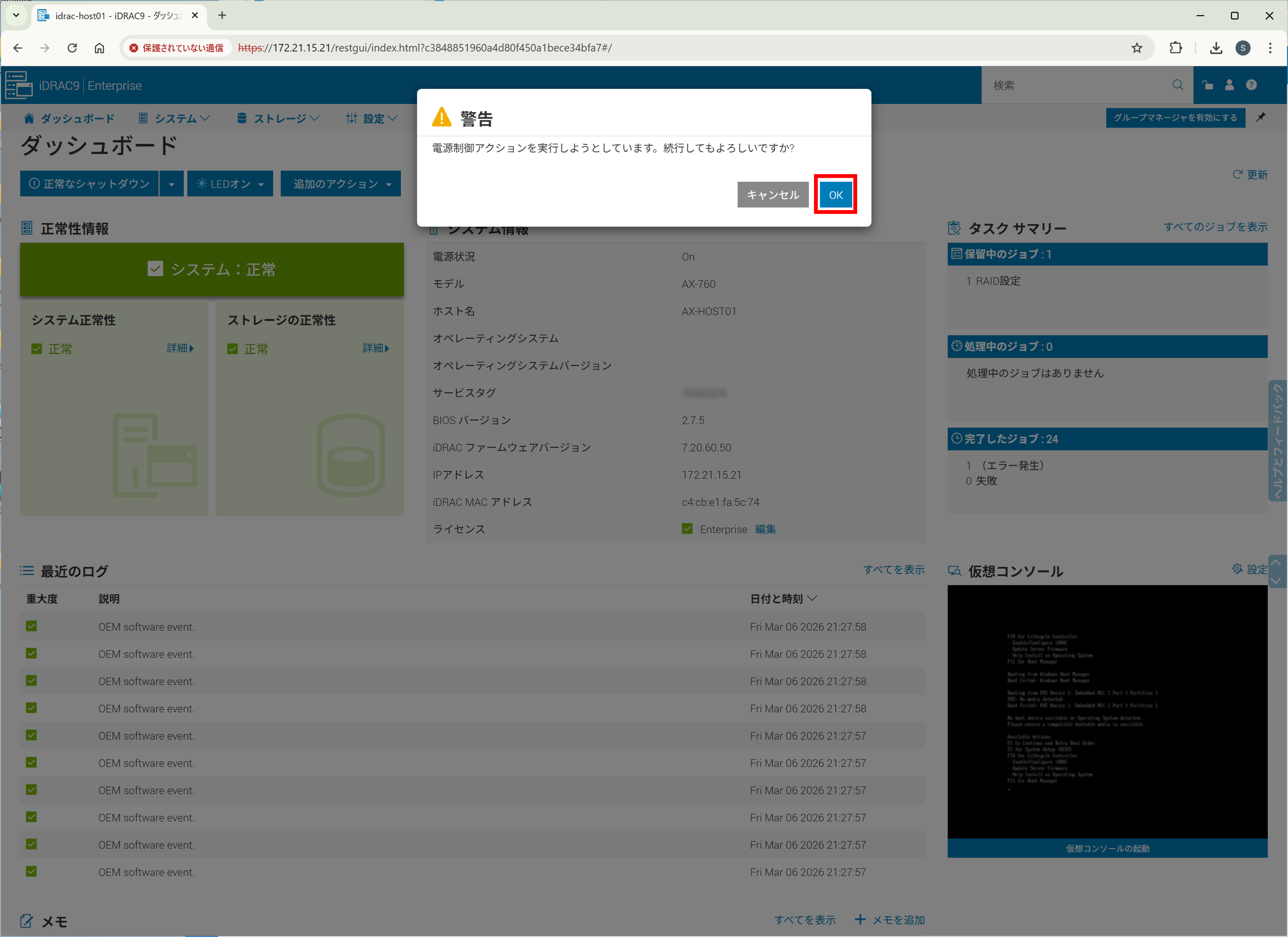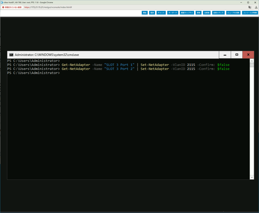 Azure Local OSのインストールは「iDRAC 仮想コンソール」から行います。そのため、各ノードのiDRACへアクセスするために、iDRACに管理IPアドレスを設定します。