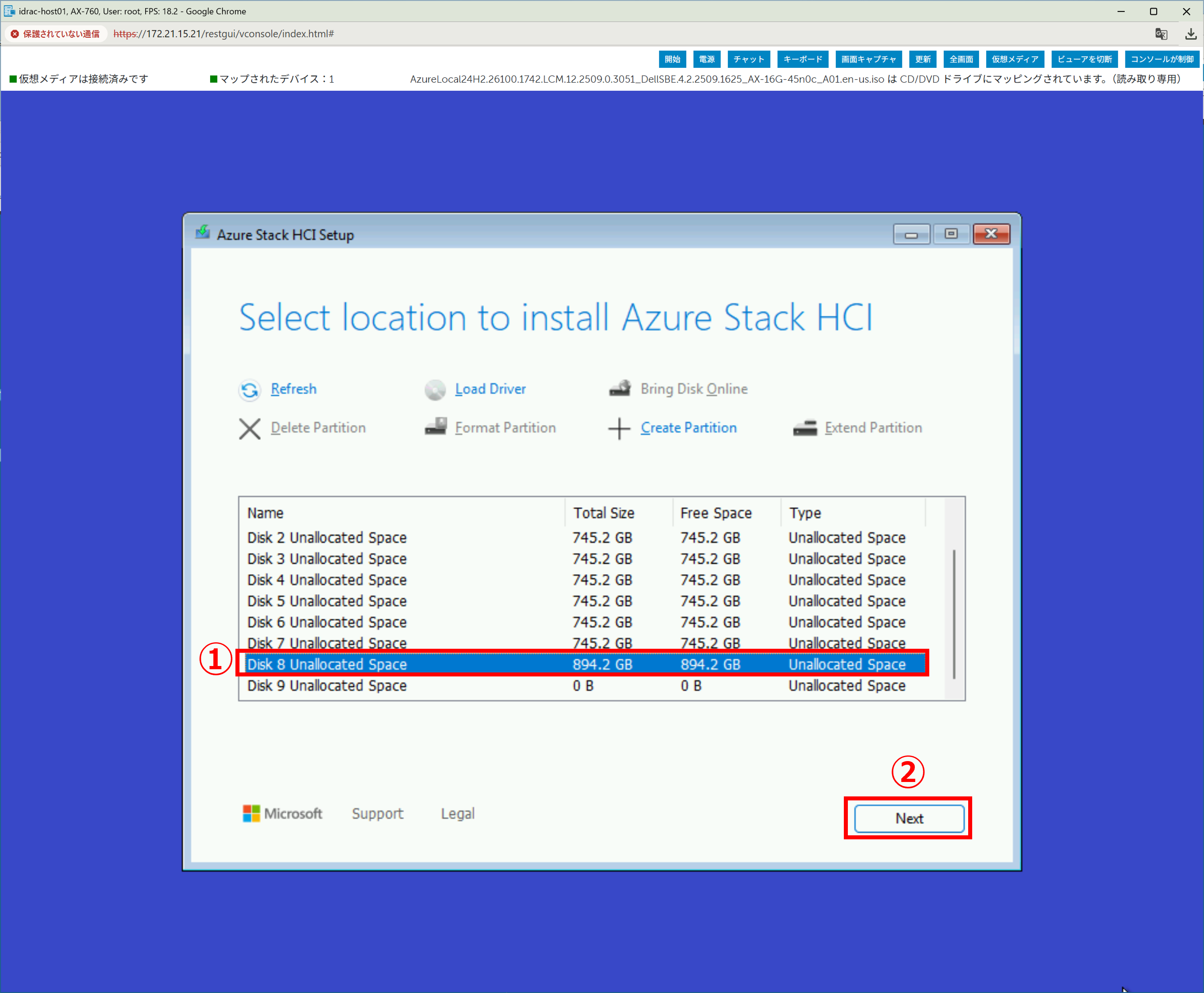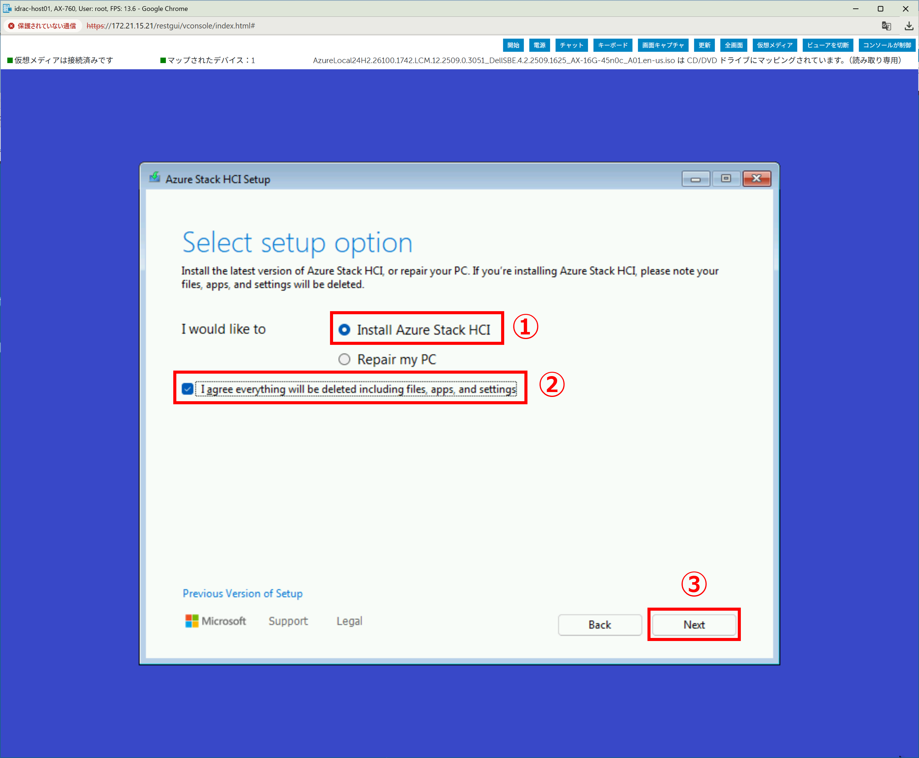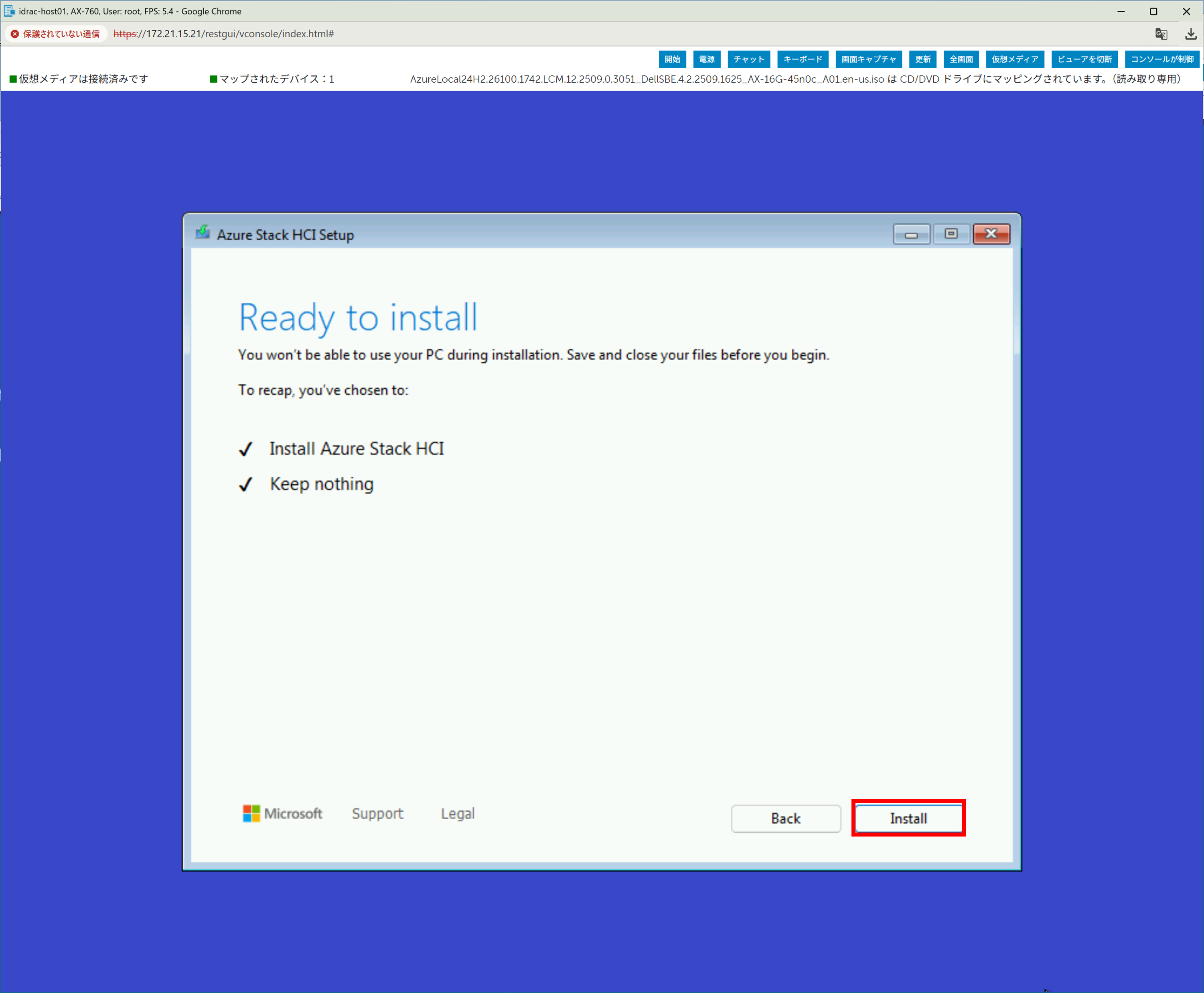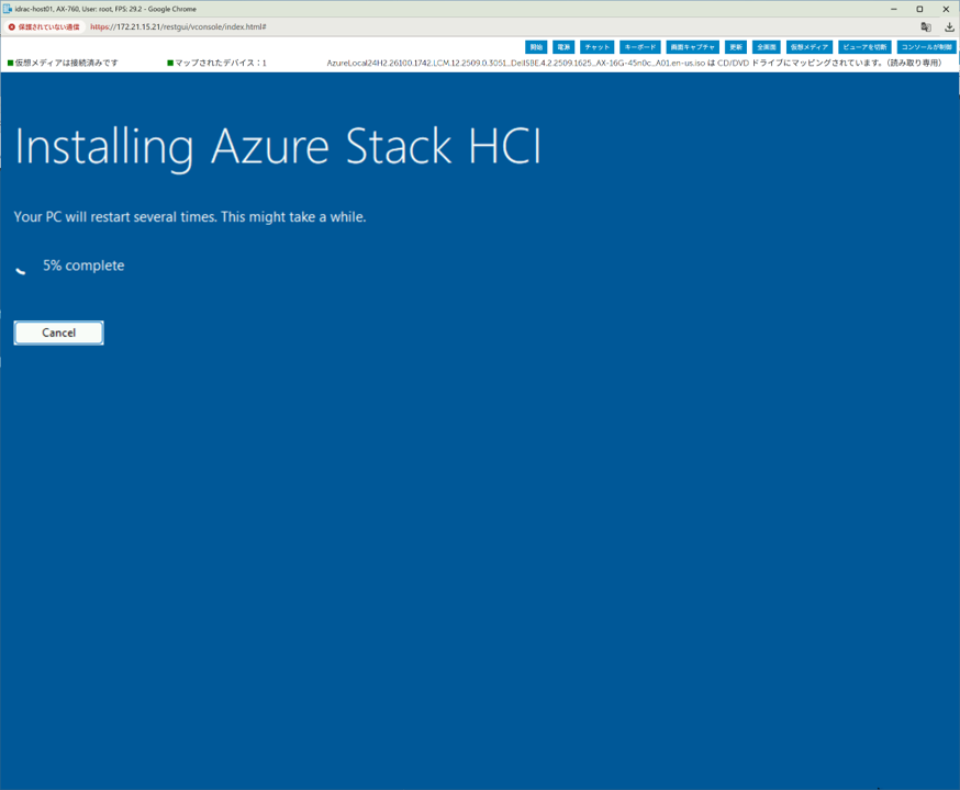 iDRAC仮想コンソールからAzure Local OSをインストールします。