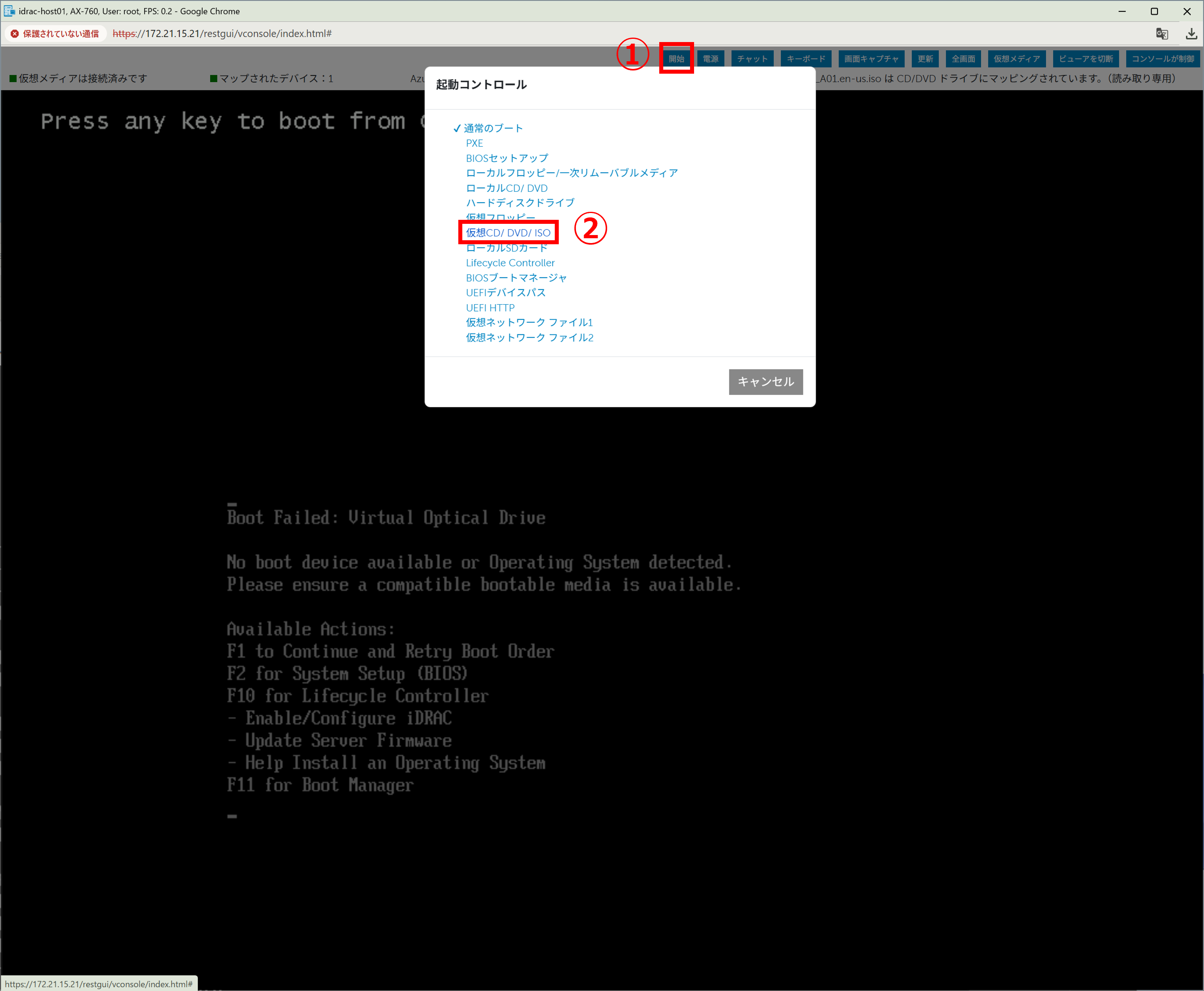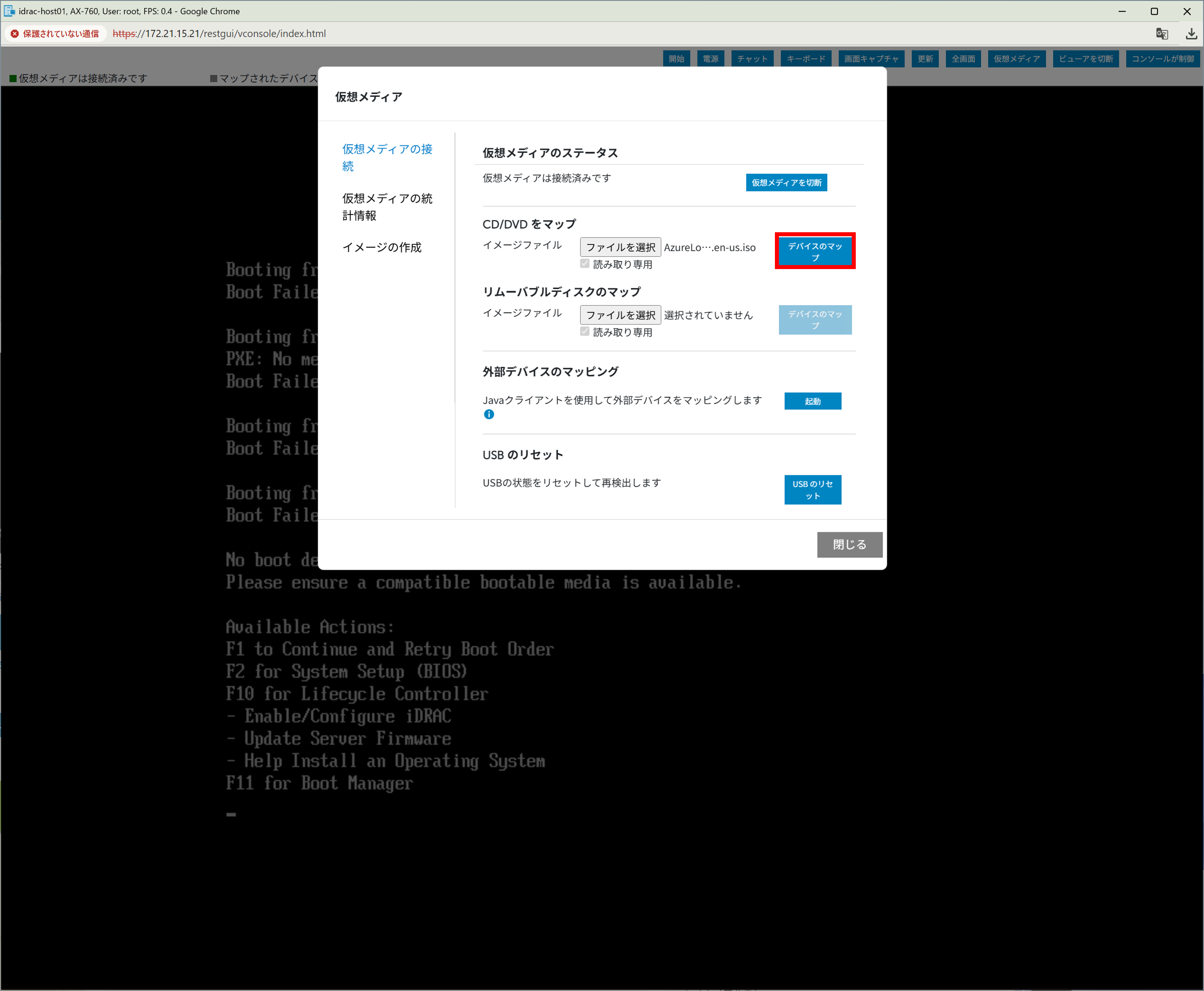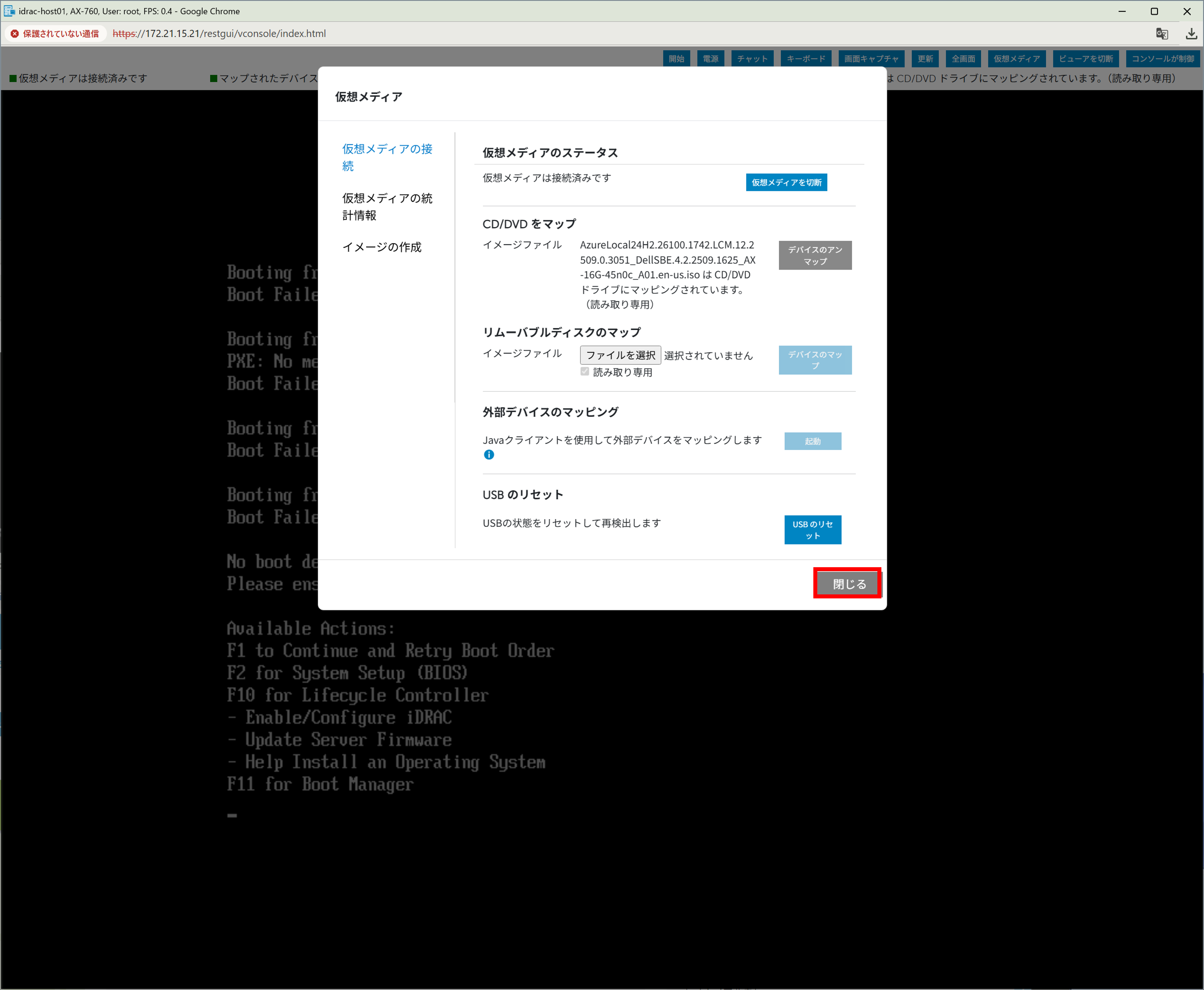 iDRAC仮想コンソールからAzure Local OSをインストールします。