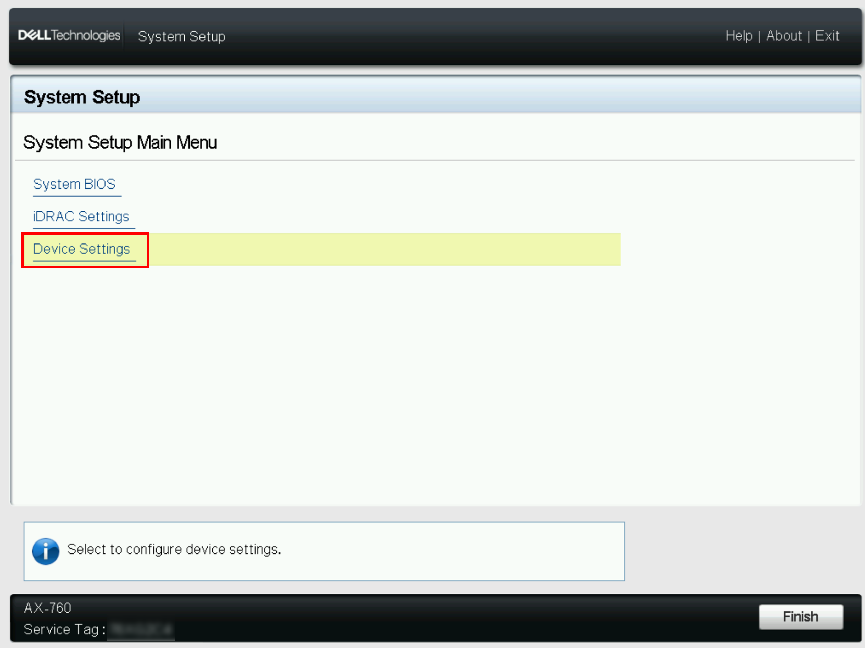 2. System Setupのメニューで、[Device Settings] をクリックします。