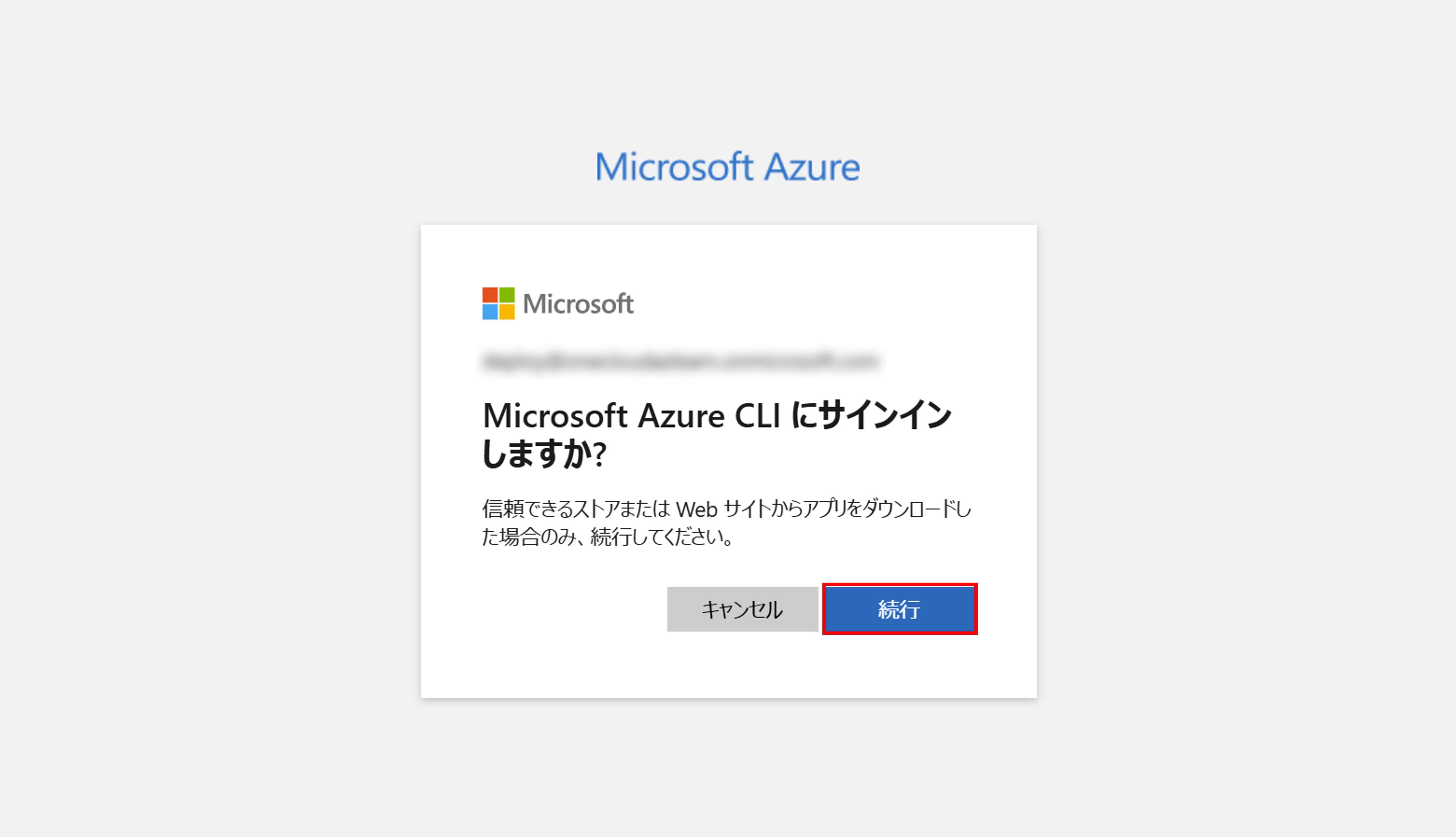 5. Azure CLIへのサインインを求められたら、[続行] をクリックします。