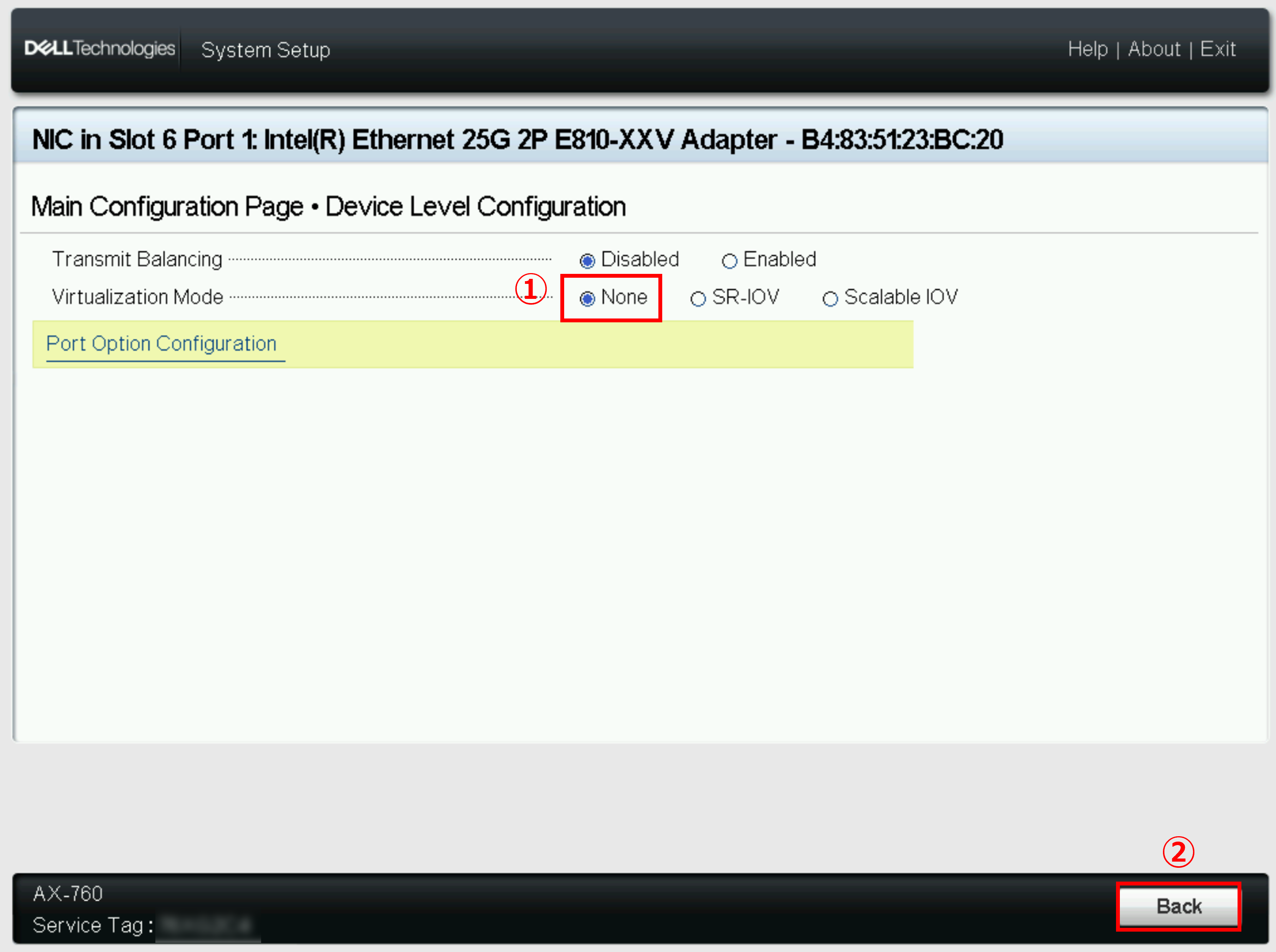 5.「Virtualization Mode」で [None] を選択し、[Back] をクリックします。