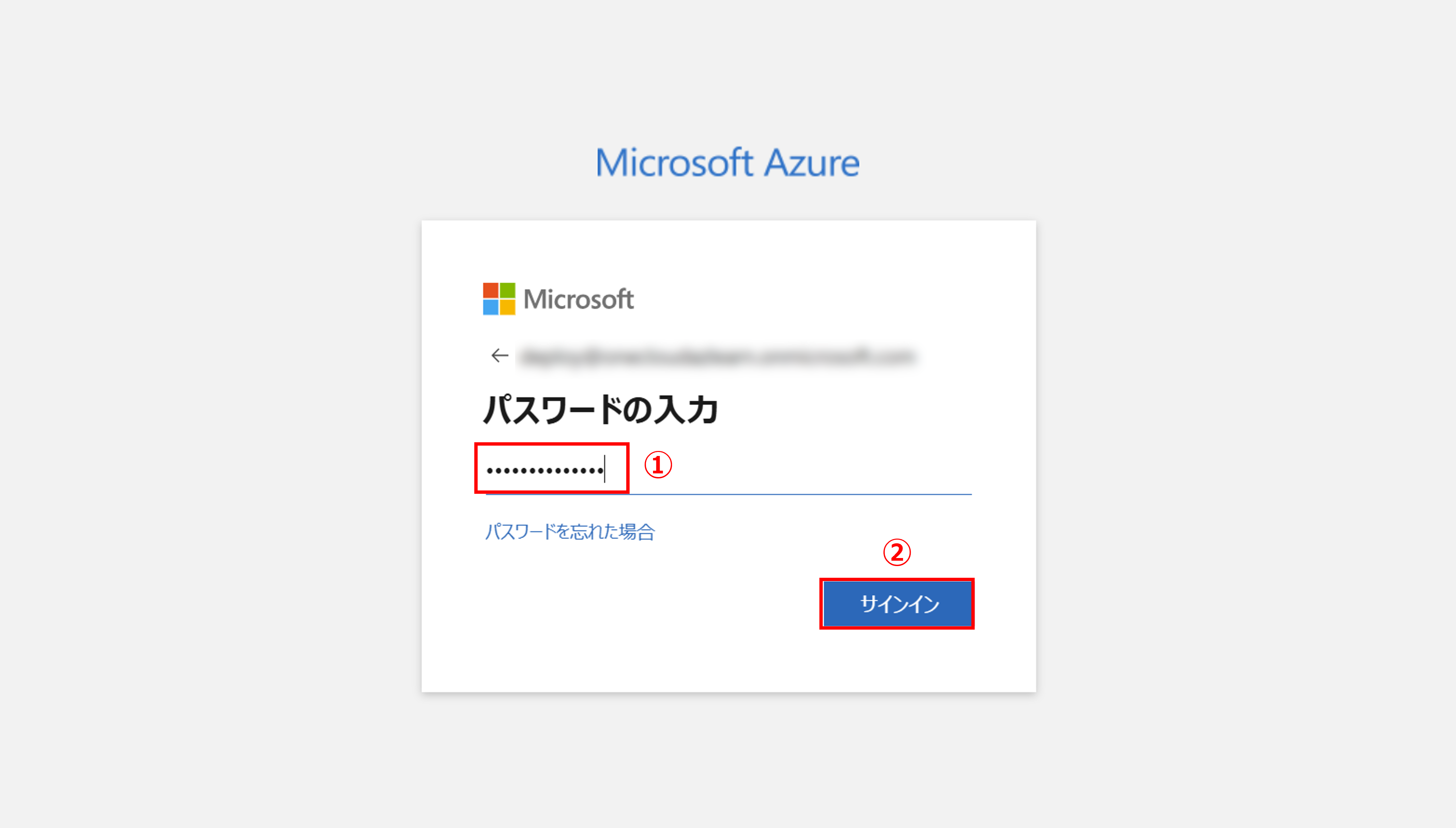 - Azureデプロイ用ユーザーのパスワードを入力します。