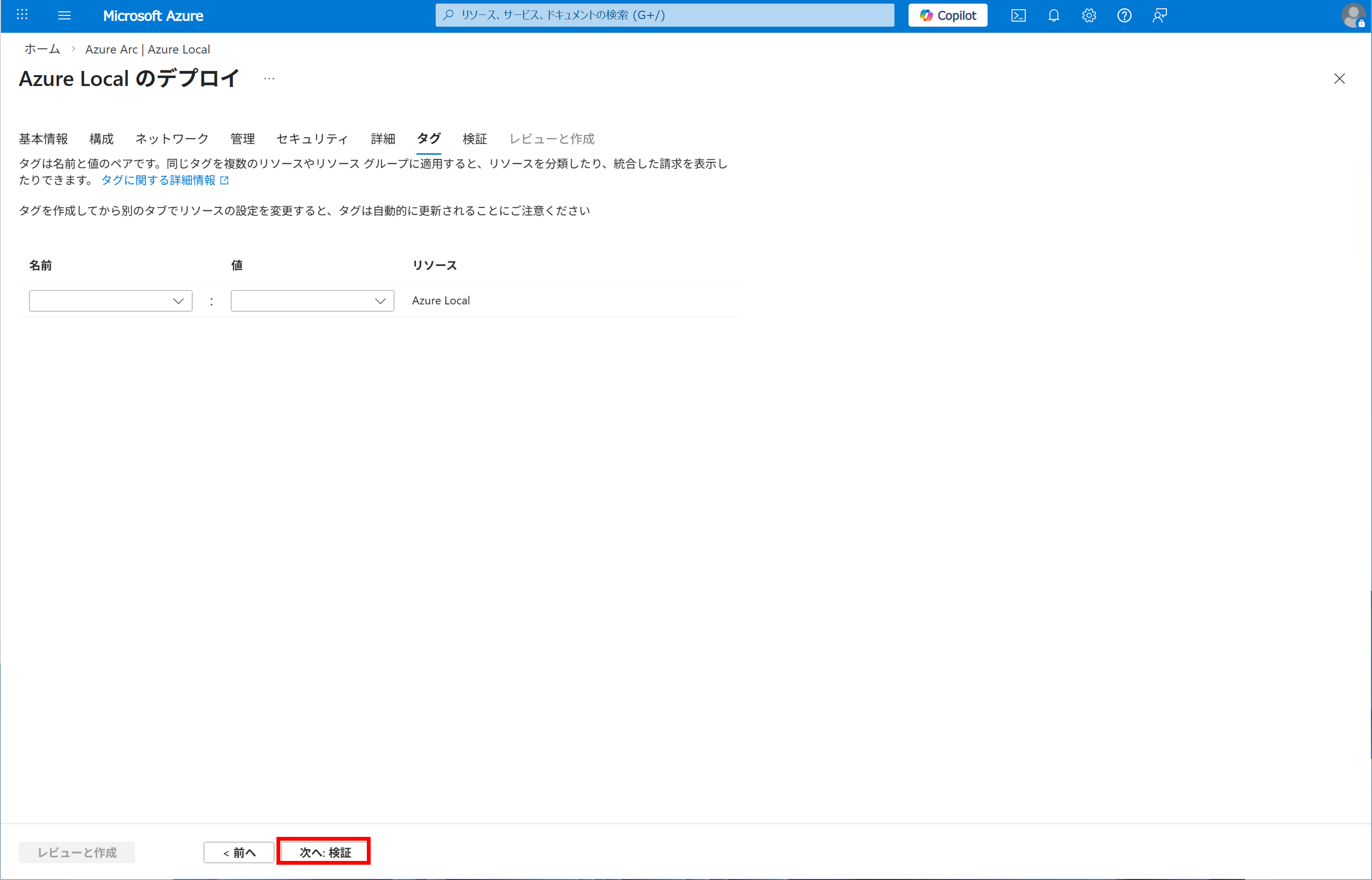 19.「タグ」ページでは、そのまま [次へ:検証] をクリックします。