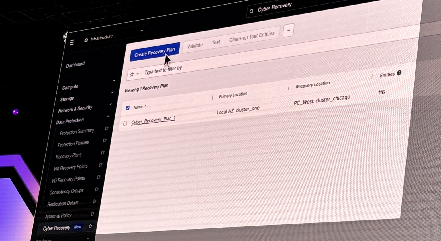 そのための新機能として、Nutanix Disaster Recoveryに「Cyber Recovery Plan」という新たなメニューが追加されていることがデモから確認できます。