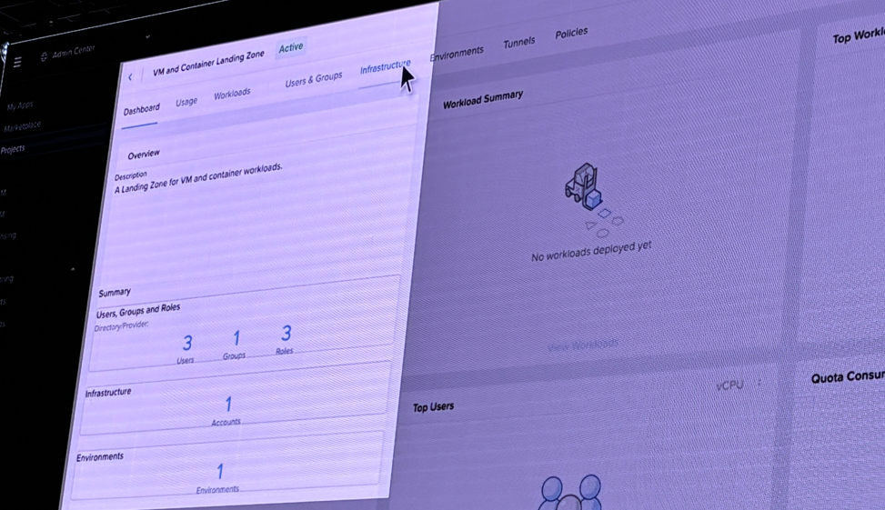 そのうえで、IT管理者はこのランディングゾーンに対して、設定済みのVPCとセキュリティポリシーを利用して、VMを即座に起動していました。ここで見えてくるのは、インフラ管理者が土台を整え、その上で開発者やプラットフォームエンジニアが自由に環境を構築するといった役割分担です。