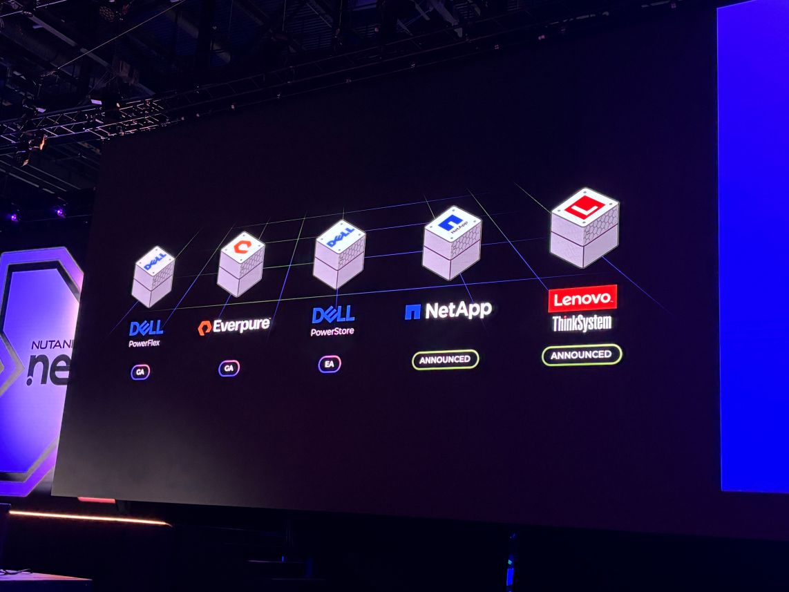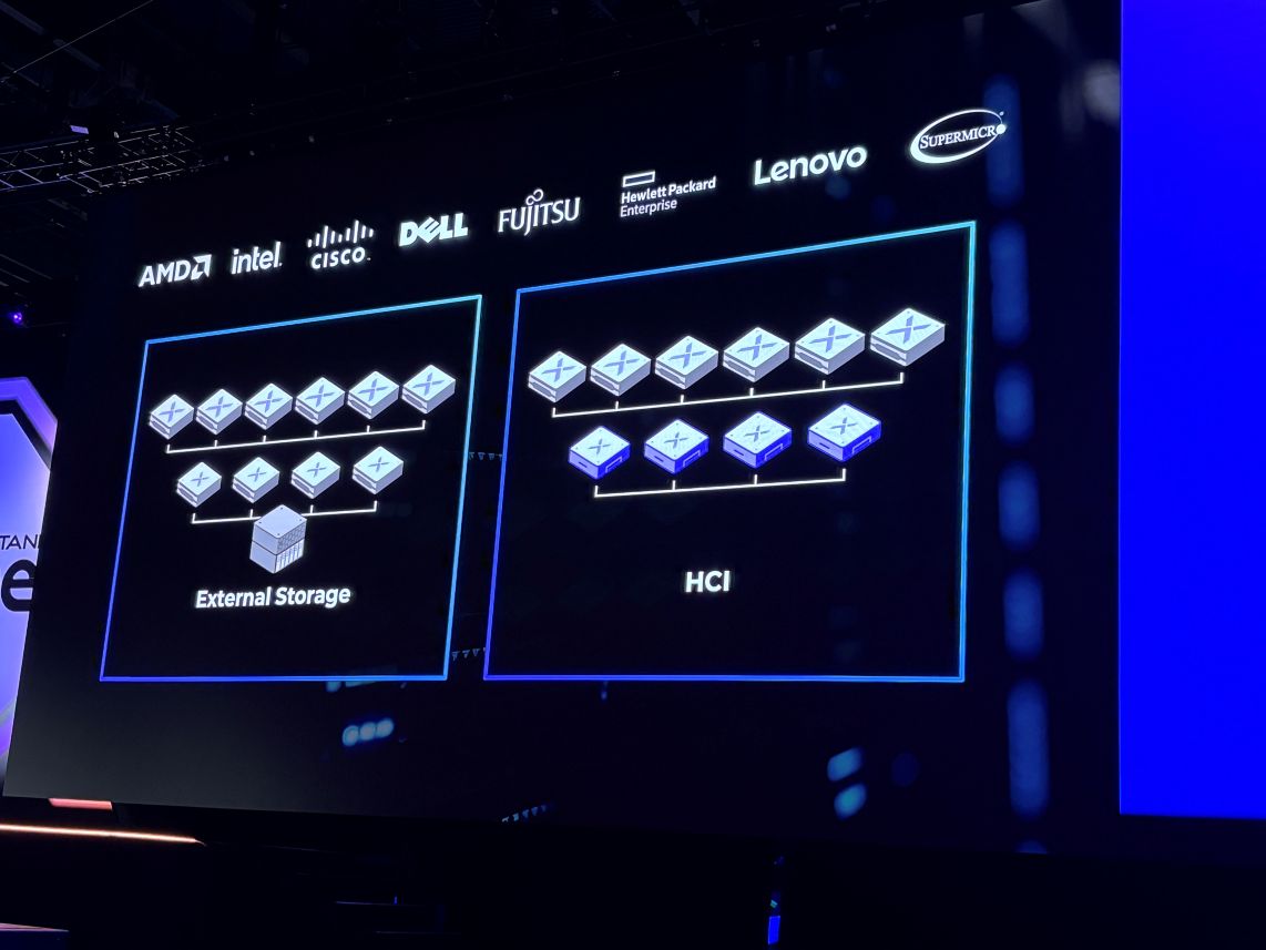 外部ストレージ構成としてすでにリリース済みであるDell PowerFlexやEverpure FlashArrayに加えて、Day1の発表でもあった通り、新たにDell PowerStoreやNetApp、Lenovo ThinkSystemが今後追加されることが改めて紹介されました。