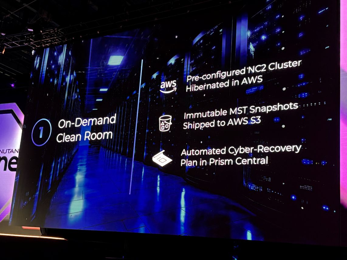 さらに、Nutanix社はこの分野でもパートナーエコシステムを紹介していました。具体的な実装の詳細はまだ不明ですが、バックアップ製品やEDR/XDR製品がAPIを使用してClean Roomの構築を自動化するといった用途が読み取れます。