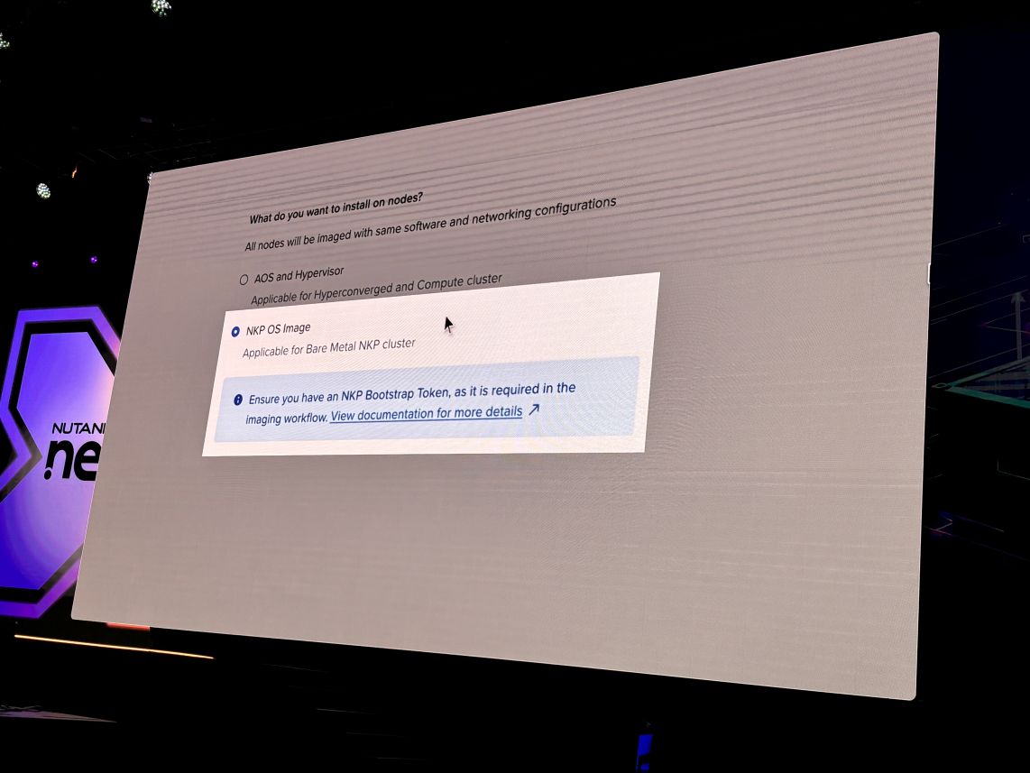デモでは、Foundation / Foundation Central でベアメタルノードを選択し、そこに新しい NKP OS Image を適用して、NKP Metalクラスターを作る流れが紹介されました。Ubuntu Pro OSを使うこともでき、独自OSを持ち込むこともできます。
