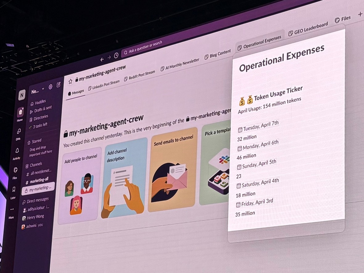 エージェント型AIは、サブエージェントの呼び出しやツール連携の中で、利用者が意識しないままトークン消費が膨らみやすく、全社展開時には無視できないコスト要因になると語られました。デモでは、1人のエージェント利用でもその日だけで600万トークンを消費しているケースが紹介され、エージェント型AIの利用が広がると、トークンコストが急速に積み上がる可能性があることが示されました。