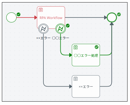 ■境界イベントの設定例(RPA実行中にエラー発生、または一定時間経過後にエラー処理に移行する例)