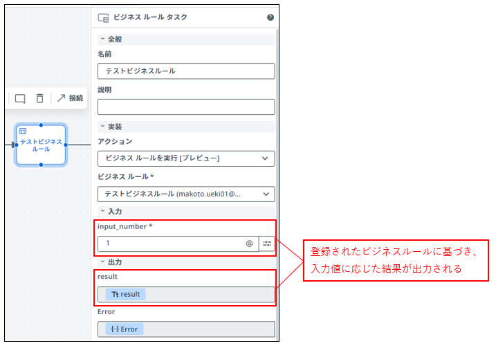 「ビジネスルールタスクを実行」からルールを選択すると、