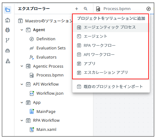 | エージェンティックプロセス | プロセス本体 | BPMNキャンバスでフローを定義 |