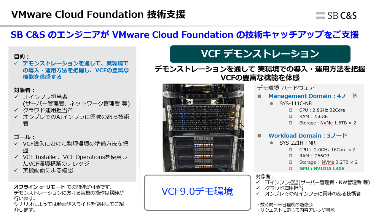 本セミナー内容をさらに深く理解したい方や、弊社エンジニアとディスカッションをしながらVCFをキャッチアップされたい方に向けて、VCF デモンストレーションセミナーを実施しています。