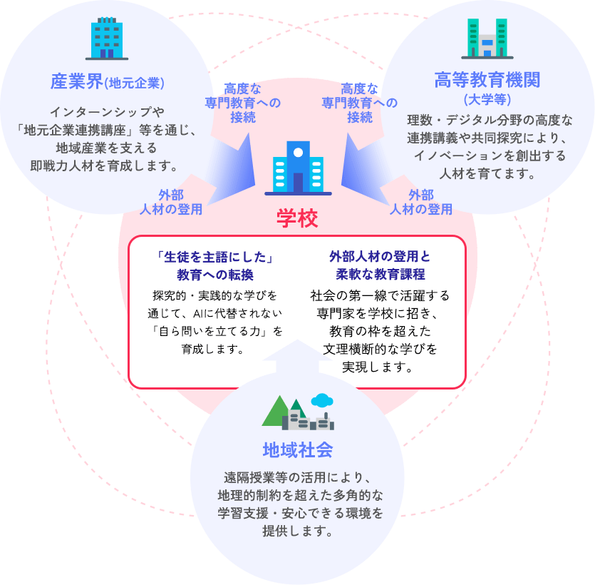 高等学校を次世代のイノベーション拠点へと進化させる教育変革です。