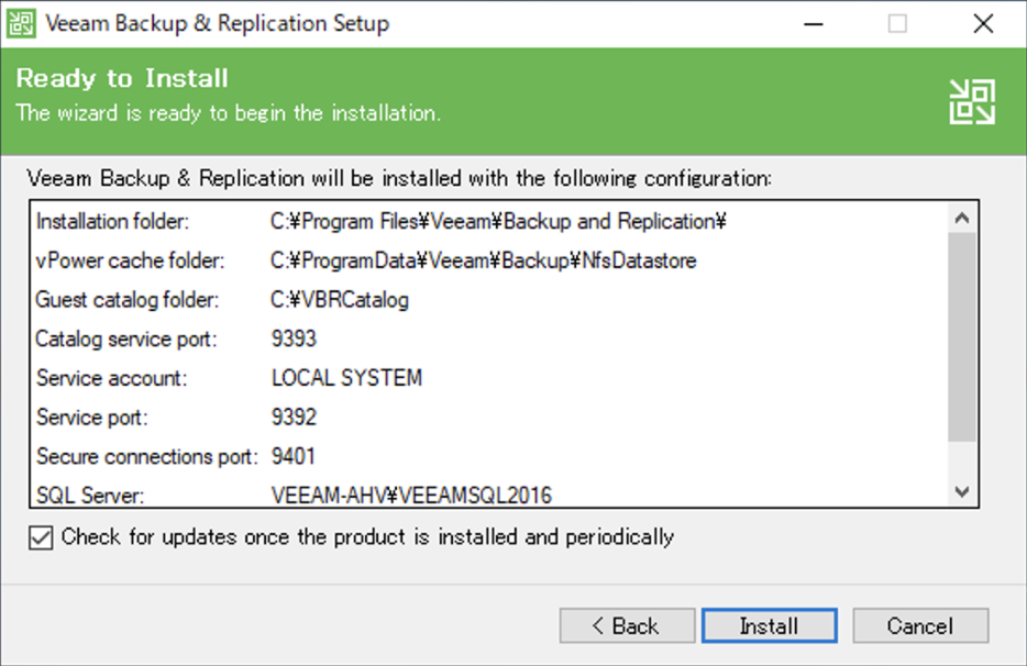 Veeam Backup & Replicationの構築手順に関しては従来のvSphereやHyper-Vの構築手順と同様となります。インストールメディアに関しては事前の準備が必要です。(Veeamのポータルサイトより要取得)