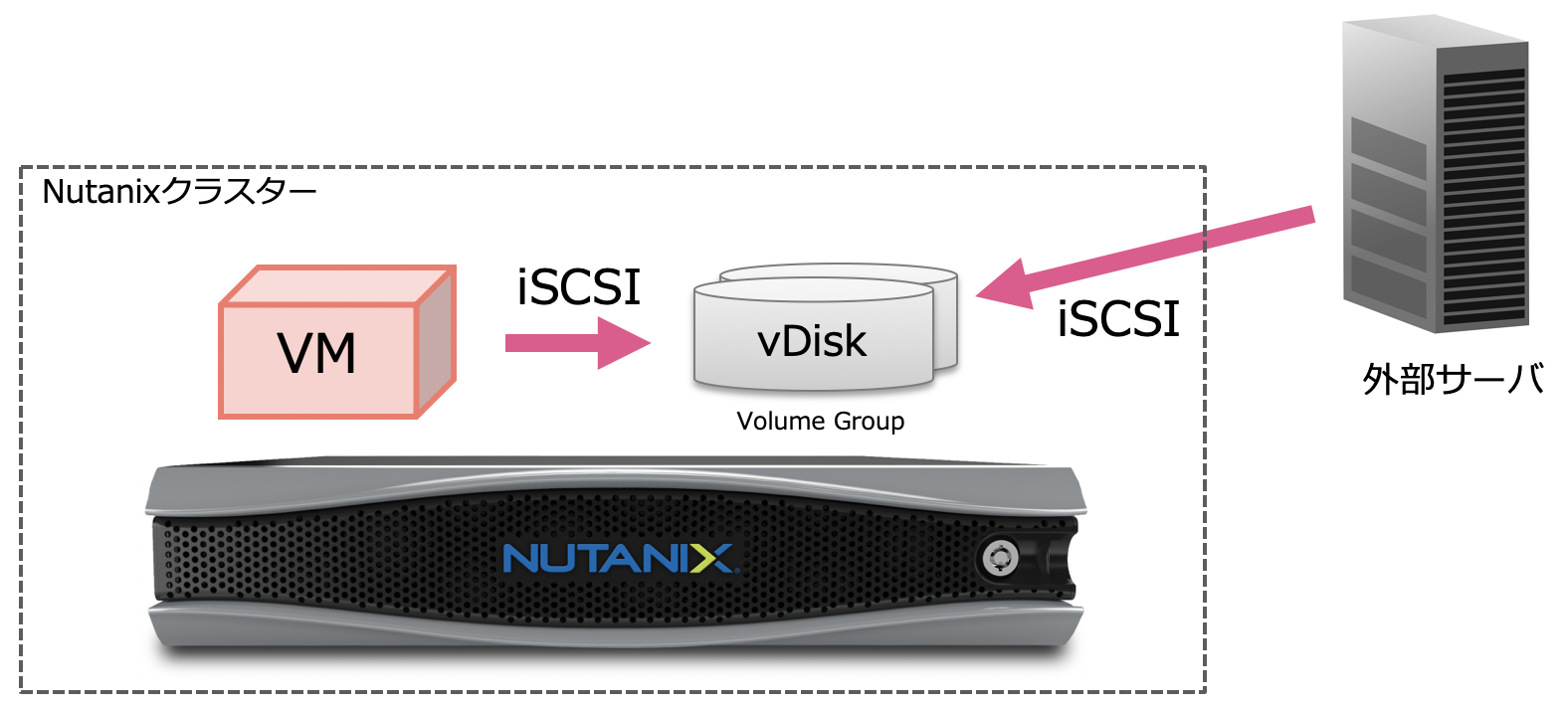 ・Nutanixクラスター内のゲストOSだけでなく、外部サーバからもiSCSI接続できる