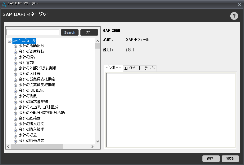 | SAP BAPIマネージャー | SAP BAPI Manager | ||