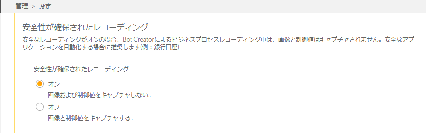 安全な記録モード(Secure Recording Mode)の設定ができます。