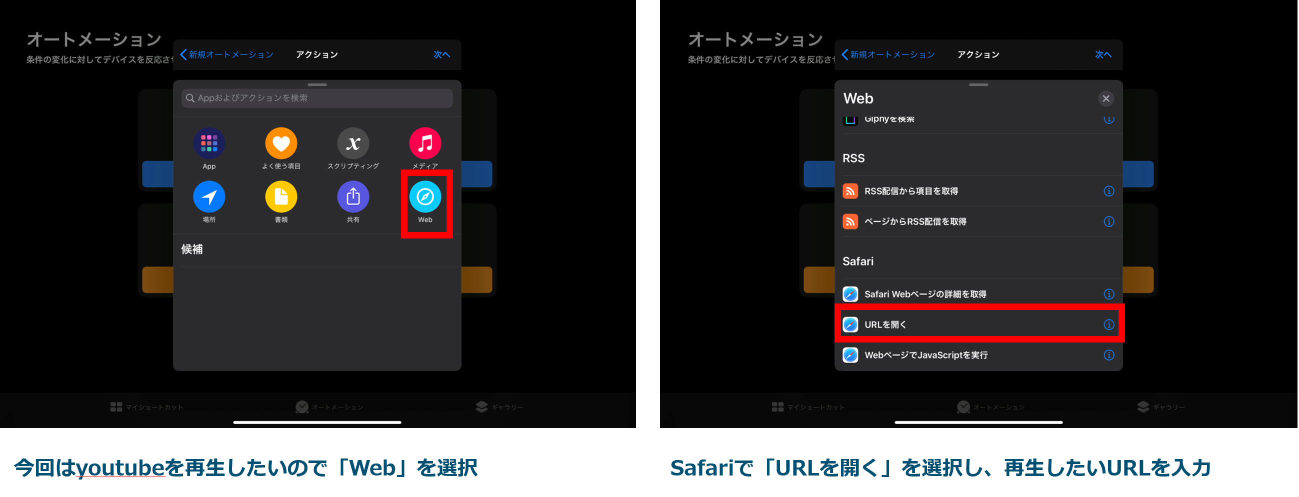 実行したいアクション:SafariでyoutubeのURLを開く