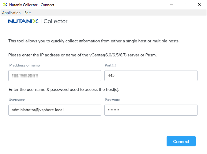 | IP address or Name | vCenter ServerまたはPrismのIPアドレスを入力します |