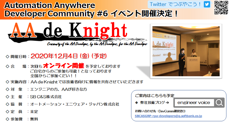 Automation Anywhere Developer Community『AA De knight #5』(2020/10/16) オンラインのTweetまとめ