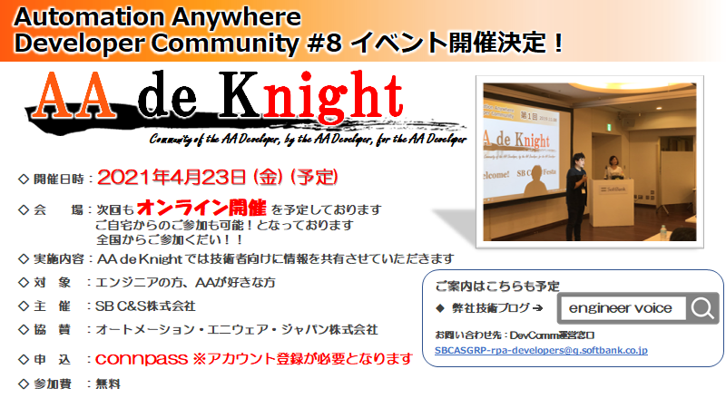 窓口:SBCASGRP-rpa-developers@g.softbank.co.jp