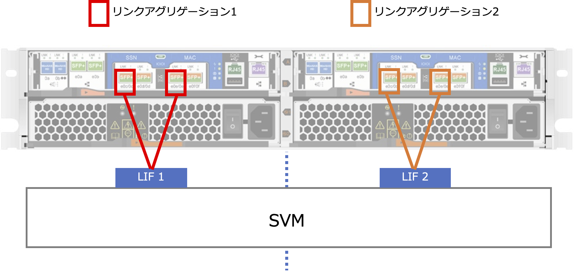 この構成を行うことでSVMが増えた際もData LIFに割り当てるネットワークポートは同一になるので設定と管理の手間が削減できます。