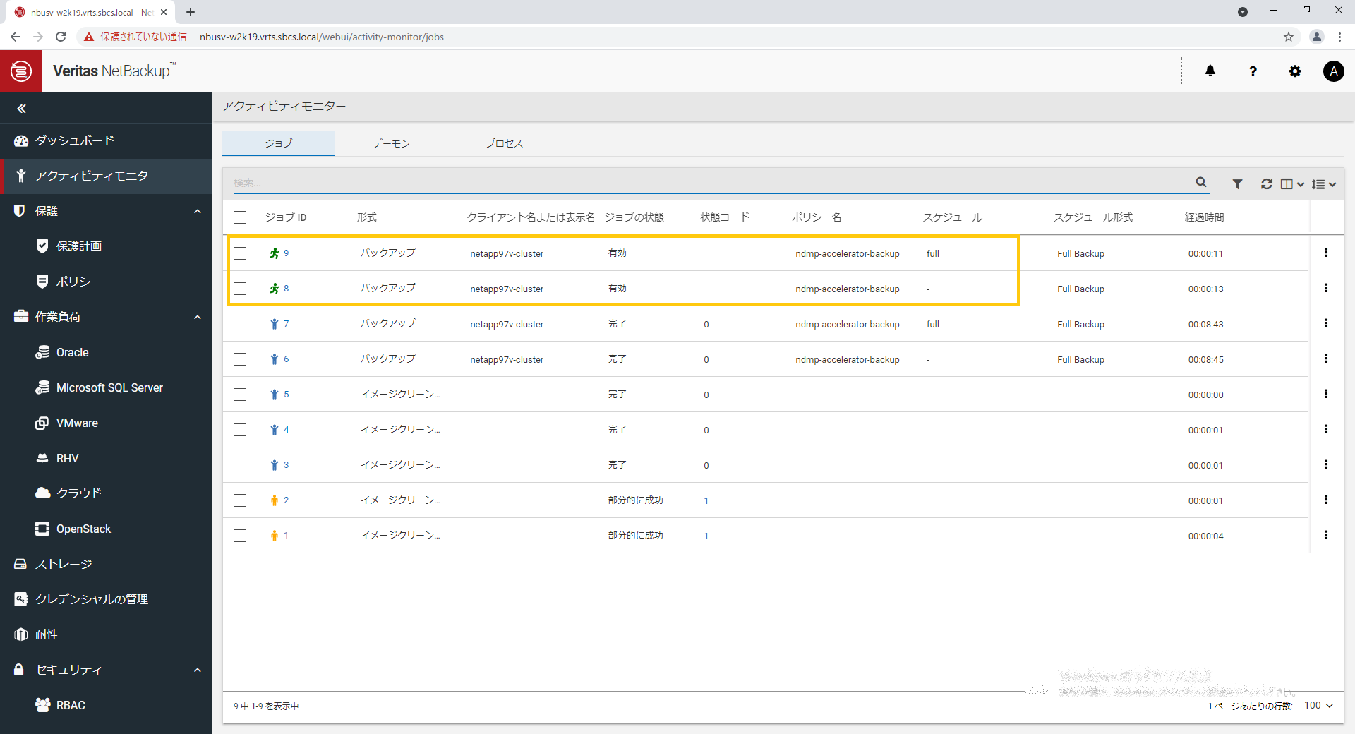 作成した ndmp-accelerator-backup ポリシーが表示されます。![]()