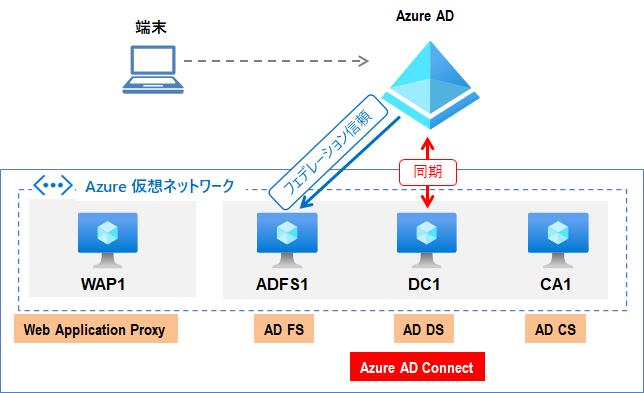 今回のAD FS環境は、Azure 上のIaaSとしてWindows Server 2019 を4台で構成しています。