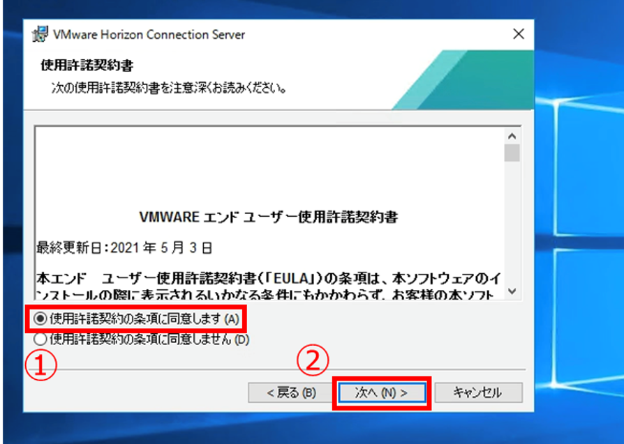 1. ダウンロードしたConnection Serverのインストーラーを実行します。 |