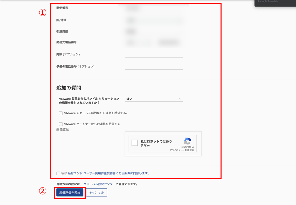 2. 質問の情報を入力し、 [無償評価の開始] をクリックします。 |