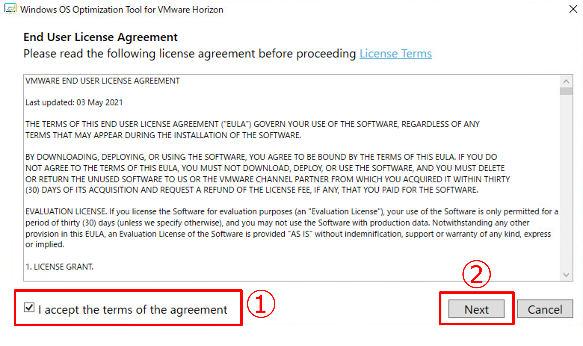 今回は、HorizonでサポートされているゲストOS最適化ツールであるWindows OS Optimization Toolを使用します。このツールでは、前述のWindows Updateの無効化やUWPのクリーンアップ、位置情報取得の無効化なども設定できます。ただし、仮想デスクトップの要件によっては、Windows OS Optimization Toolだけでなくその他のツール等も併用したカスタマイズも必要になります。