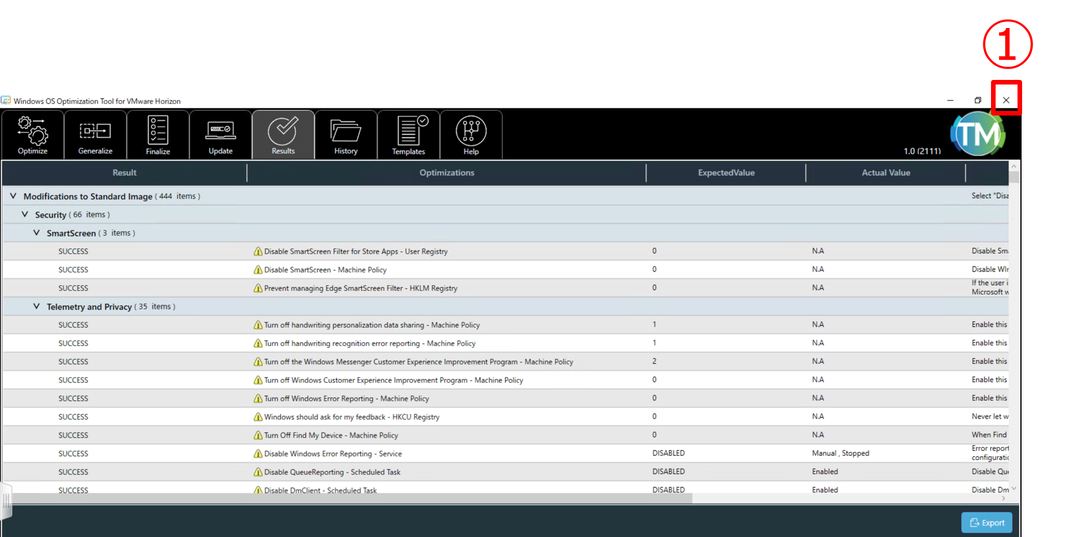 4. ダウンロードしたWindows OS Optimization Toolを、ゴールドイメージとして構成する仮想マシンで実行します。 |