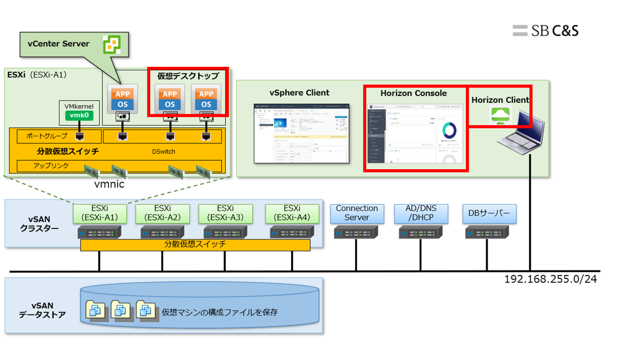 - ESXi 4台(Nested仮想マシン)