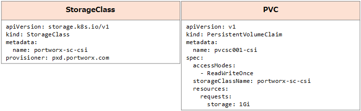 それではKubernetes側からStorageClassとPVCを利用してボリュームを作成できるか確認してみます。 ここでは以下のStorageClassとPVCを利用し、Namespace "guestrole-test"で動作を確認します。(PortworxはCSIを利用しボリュームを作成することも可能です。ここでは後続のご説明の都合上、こちらの記載に沿ってCSIを利用するStorageClassを作成しています。)