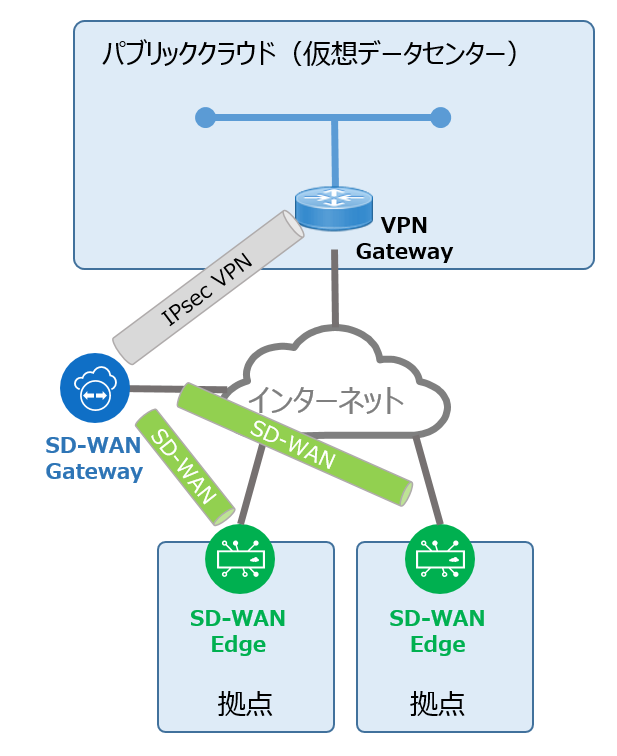 VMware SD-WANとパブリッククラウドとの接続イメージ