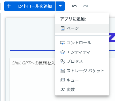 画面真ん中上部の「+コントロールを追加」をクリックすると、画面左側にコントロール追加メニューが表示されます。