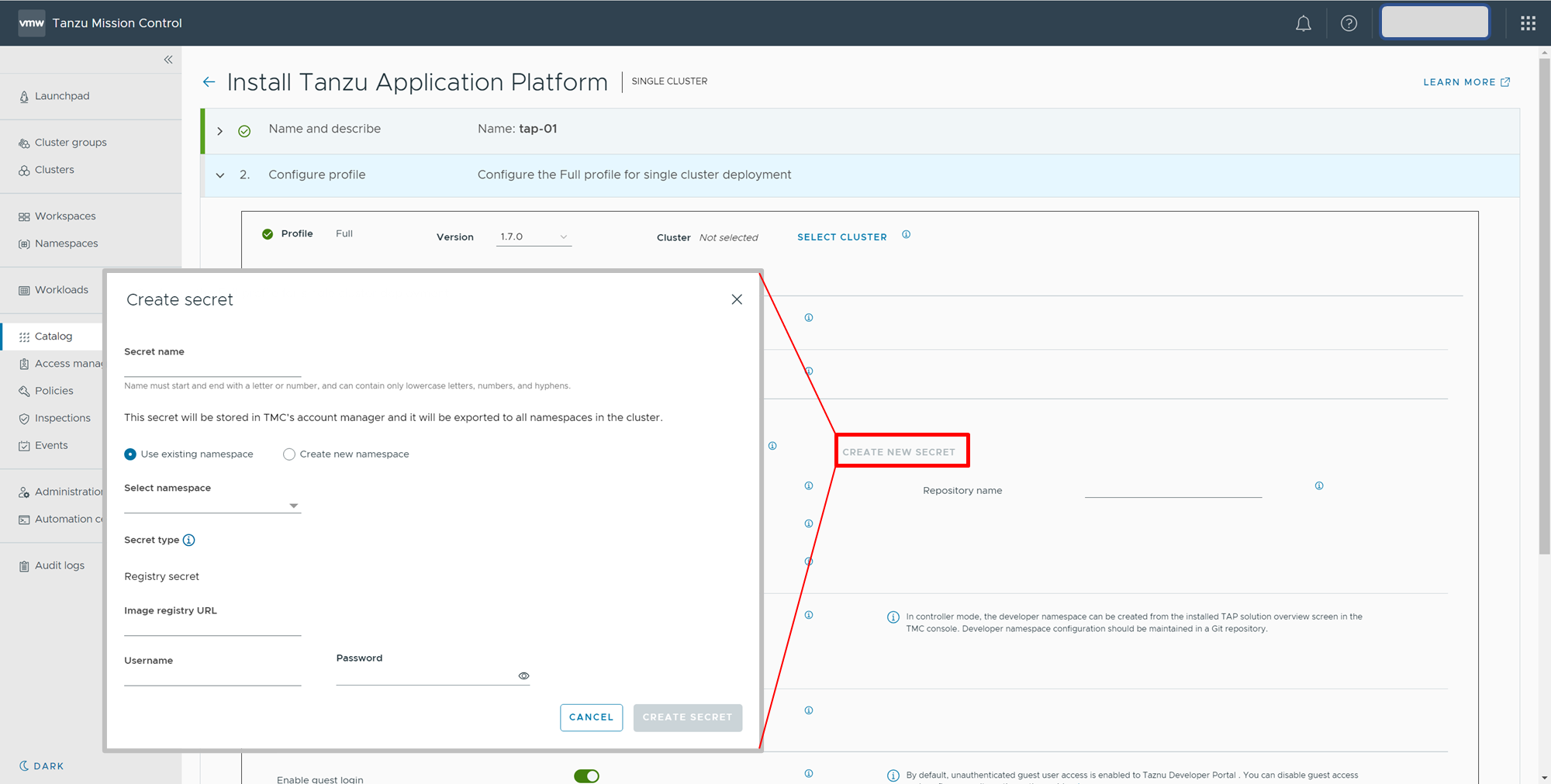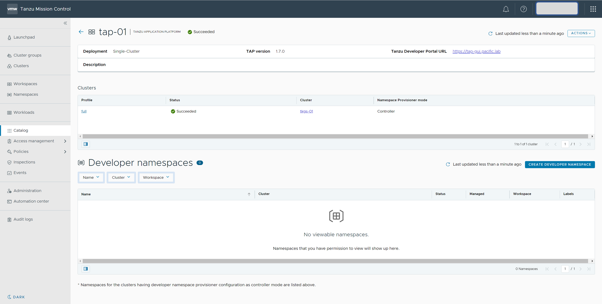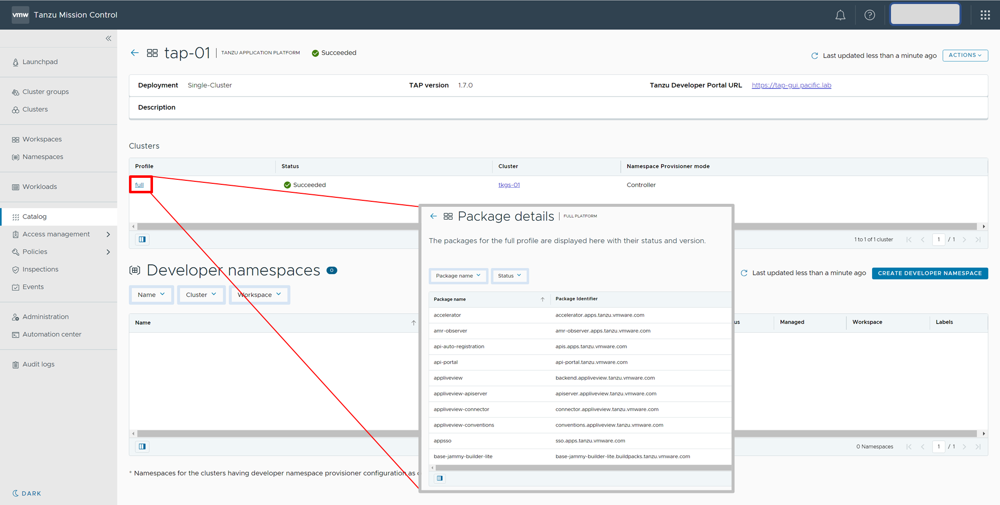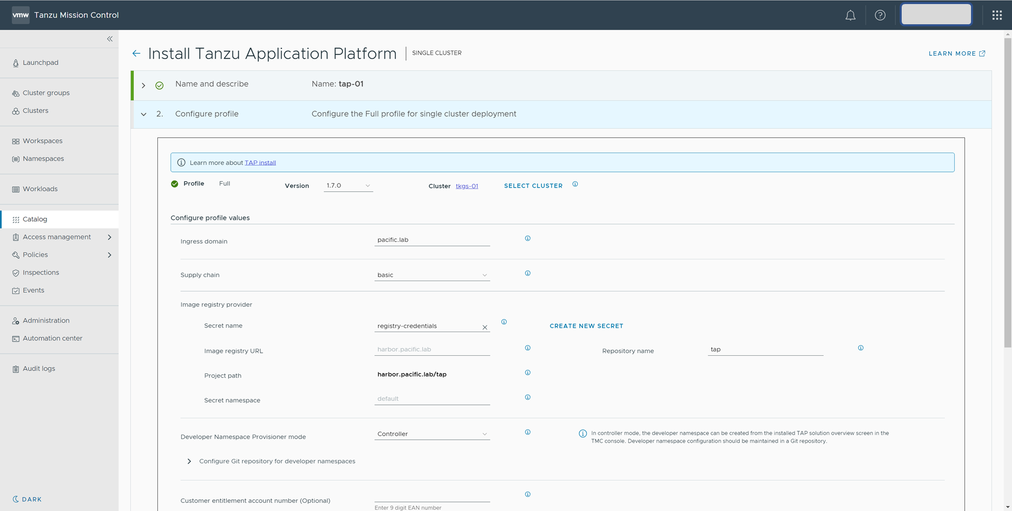 - Tanzu Application Platform name: tap-01