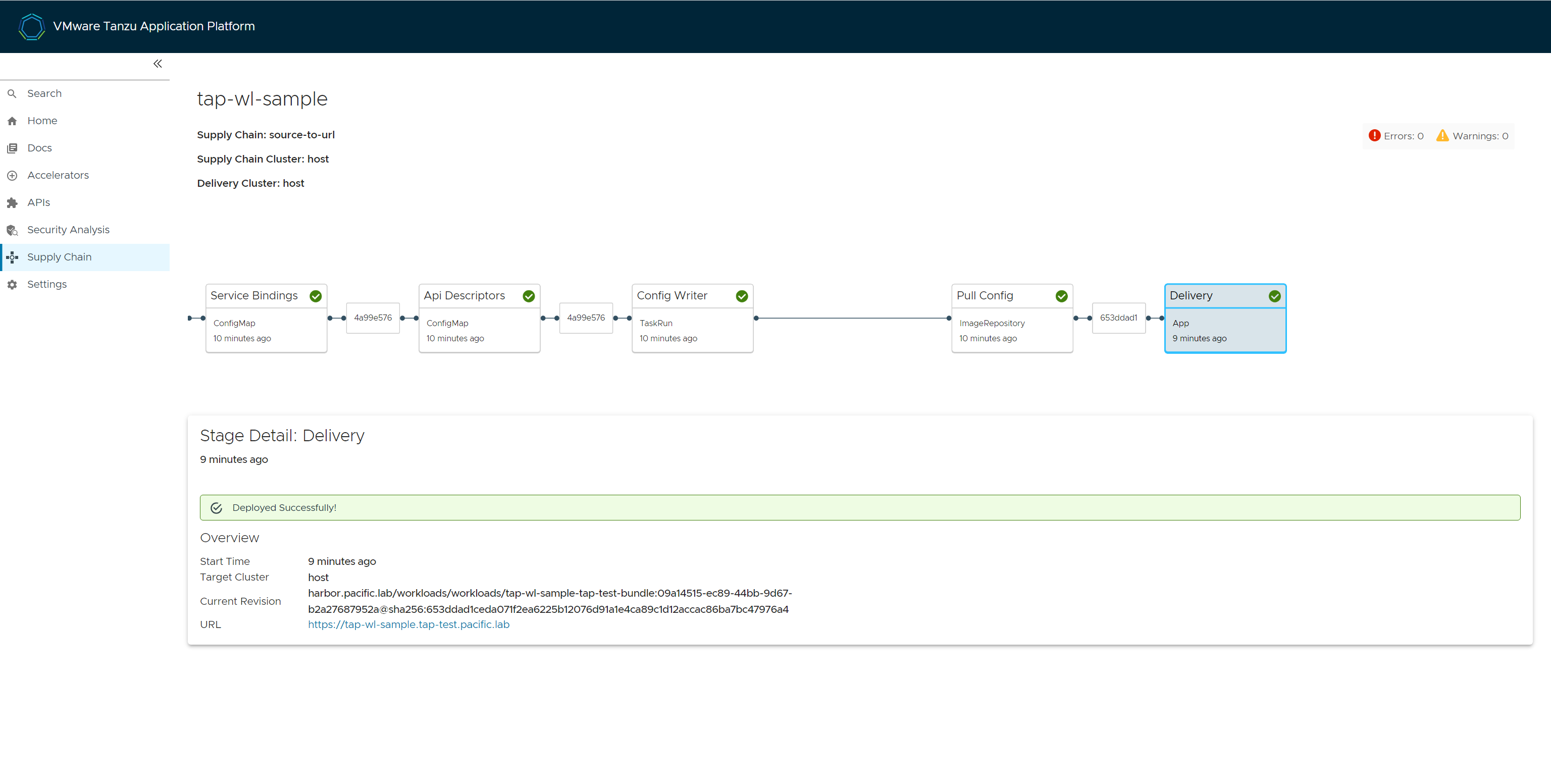 サプライチェーンのDeliveryフェイズがSuccessになりましたら、アプリケーションの展開まで完了している状態となります。URLの欄に対象アプリケーションのURLが記載されてることも確認できます。