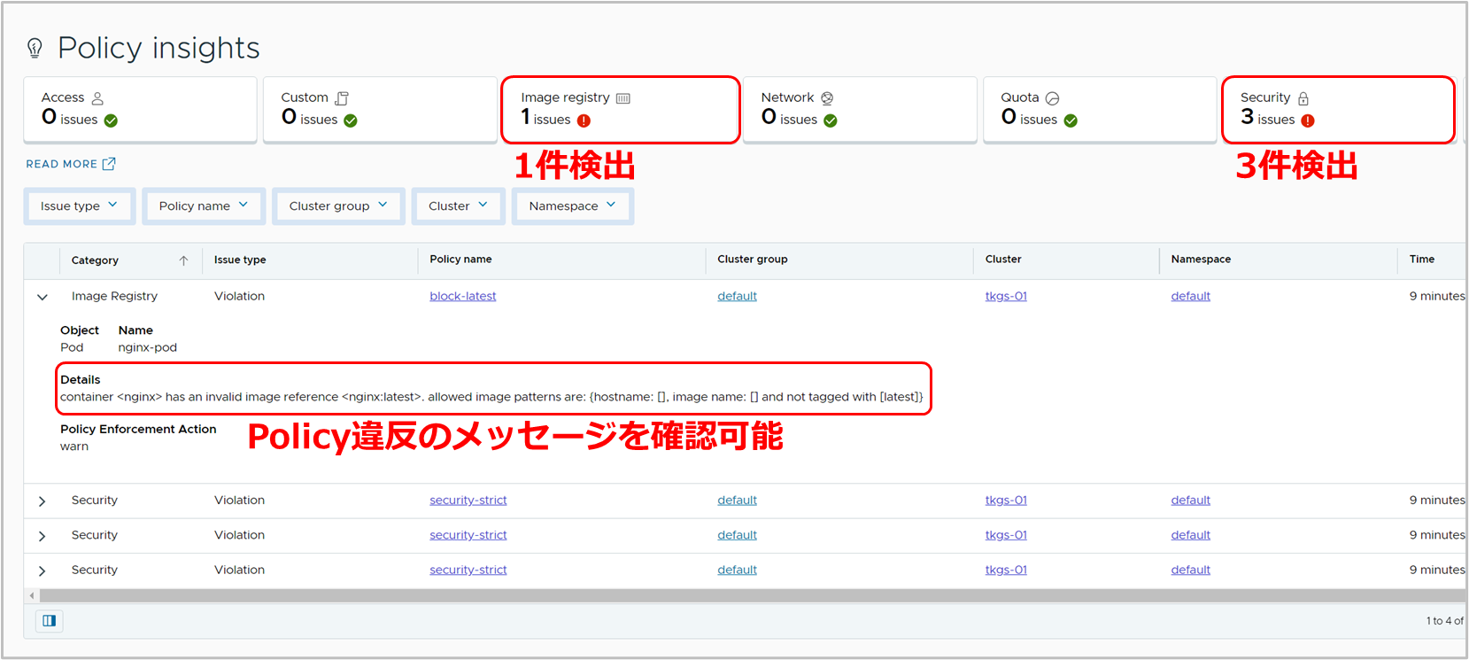 また、Policy違反の情報などもTMC上でGUIを用いて確認できます。